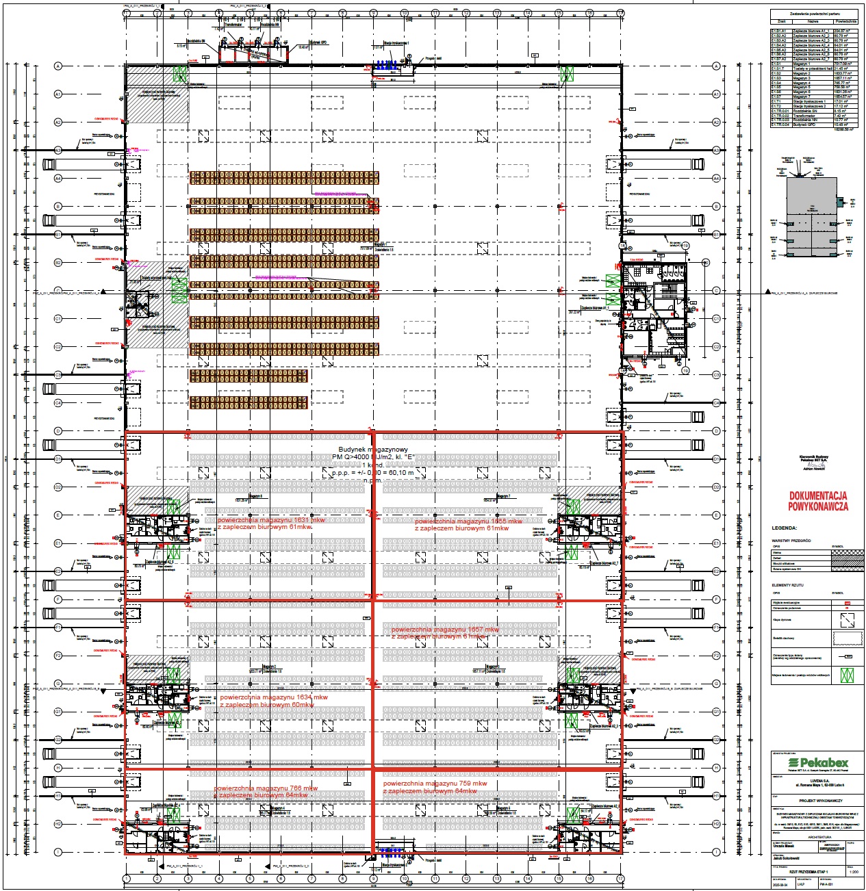 | Całkowita powierzchnia użytkowa (m2): | W oferowanych sektorach istnieje możliwość wybudowania powierzchni biurowej zarówno wewnątrz hali magazynowej jak i na zewnątrz zgodnie z potrzebami klienta. Obecnie projekty przewidują powierzchnię biurową wewnątrz hali, stanowiącą osobną strefę pożarową. Połączenie sektorów umożliwi zwiększenie powierzchni biurowo socjalnej. |